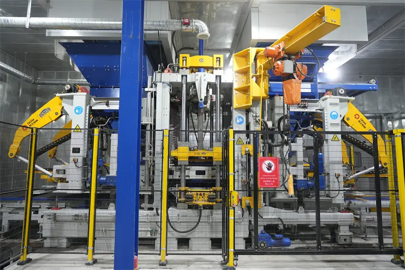 প্রোডাকশন লাইনের মূল সরঞ্জামগুলি QGM দ্বারা নতুনভাবে তৈরি ZN1500-2C ব্লক গঠনের মেশিন ব্যবহার করে, যা বেশ কয়েকটি পেটেন্ট প্রযুক্তিকে সংহত করে। সরঞ্জামগুলি একটি বুদ্ধিমান দ্রুত ছাঁচ পরিবর্তন ব্যবস্থার সাথে সজ্জিত, যা দ্রুত পাল্টে যেতে পারে বিভিন্ন পণ্য যেমন ফুটপাথ ইট এবং ভেদযোগ্য ইট তৈরি করতে; শিল্প ইন্টারনেট প্ল্যাটফর্মের উপর ভিত্তি করে, এটি উত্পাদন ডেটার রিয়েল-টাইম পর্যবেক্ষণ এবং বুদ্ধিমান বিশ্লেষণ উপলব্ধি করে, সরঞ্জামের ব্যর্থতার সতর্কতা প্রতিক্রিয়া সময়কে 60% দ্বারা সংক্ষিপ্ত করে এবং অপারেশন এবং রক্ষণাবেক্ষণ দক্ষতা উল্লেখযোগ্যভাবে উন্নত করে।